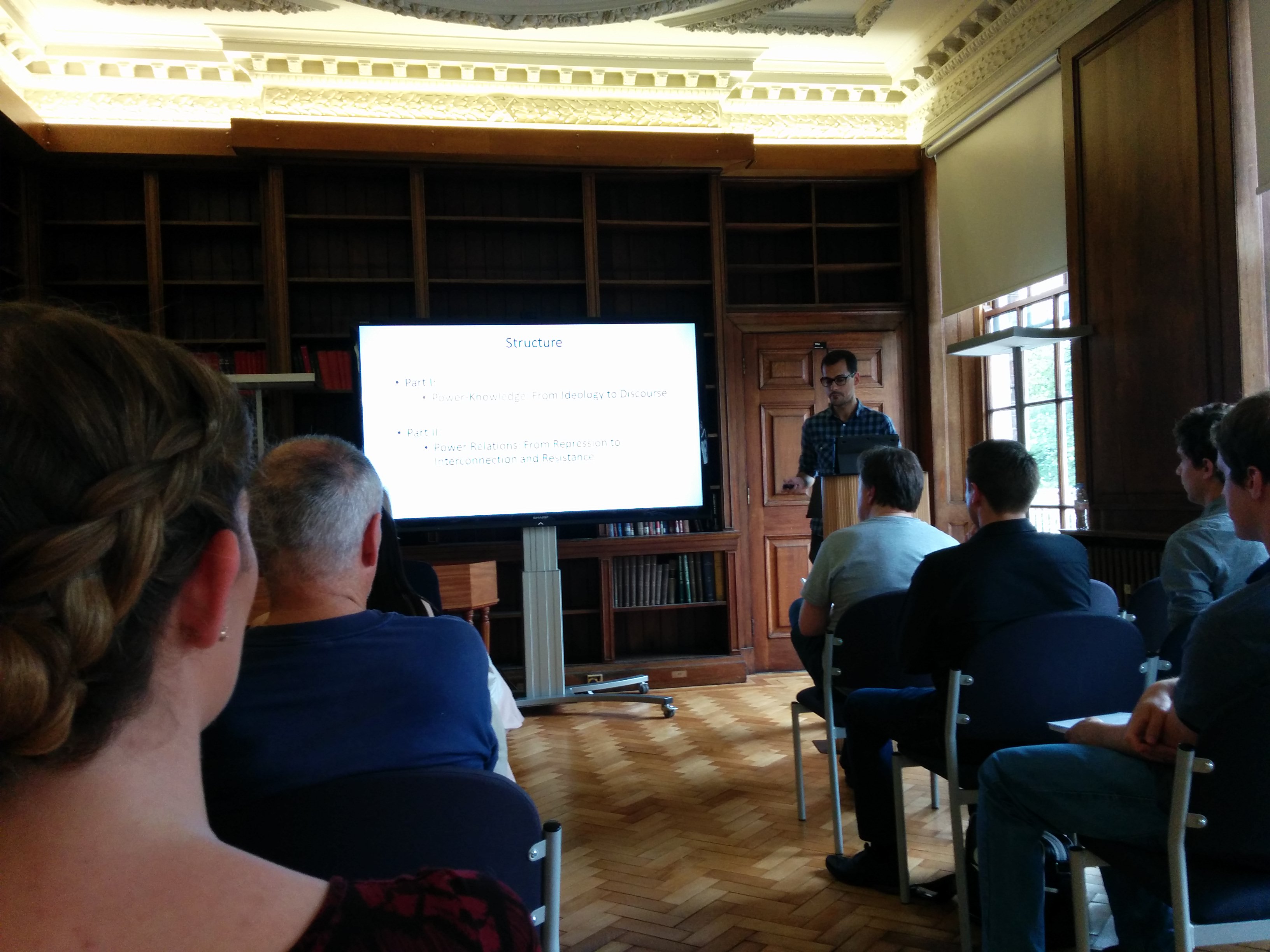 A speaker gives a talk on power relations in the Underworld USA trilogy: