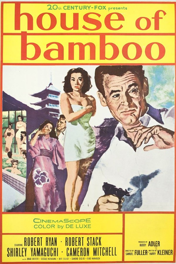 In House of Bamboo, Robert Stack stars as US Army Investigator Eddie Kenner, who is on special assignment to investigate a murderous clique led by ex-soldier Sandy Dawson (Robert Ryan). Kenner curries favor with Dawson and his inner circle, gaining their trust while beginning a relationship with Mariko (Shirley Yamaguchi), the wife of a murdered gang member. When the police are tipped off about a planned robbery, the portentous Dawson suspects there’s a traitor among them.