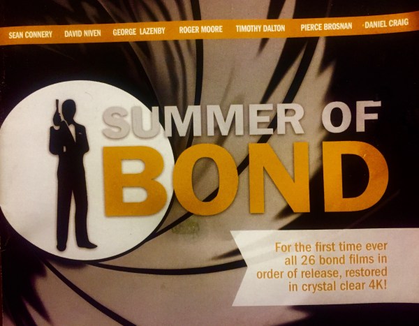 That’s right: starting back on July 1 with 1962’s Doctor NO, and every fourth day since, a subsequent “classic” Bond film has been screened at a level of visual and audio quality far eclipsing that of the ABC Sunday Night Movie versions I grew up on in the late-1960s and early-1970s, or even the films I saw upon first-release on the big screen starting with (here I date myself as cinema Bond and I came into the world together in 1962) You Only Live Twice, at the tender age of five.