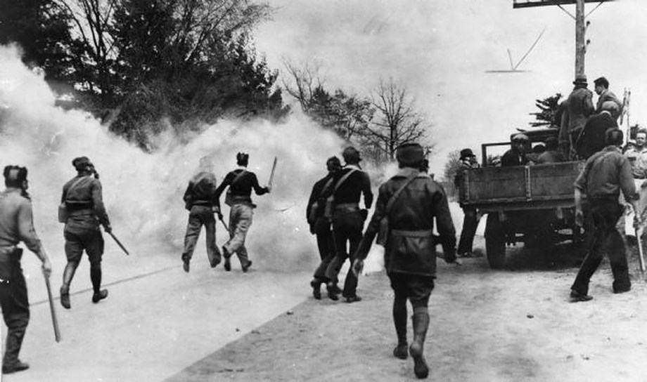 National Guardsmen brought in Governor Albert G Schmedeman to combat striking farmers