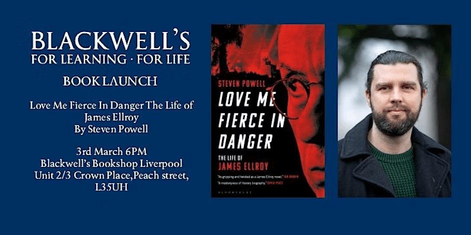 I’ll be appearing at Blackwell’s Liverpool to talk about Love Me Fierce in Danger: The Life of James Ellroy on Friday March 3rd at 6pm.