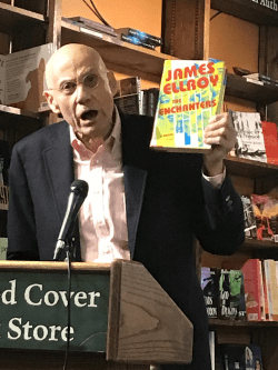 Ellroy soon contradicted this absolution however, when a patron asked him whether he would ever narrate any of his novels, as it was a perfect opportunity to promote Audible’s upcoming unabridged verbatim rendering of American Tabloid, which features Ellroy reading the narrative and the dialogue performed by a full cast, all in an epic runtime of nearly 22 hours.