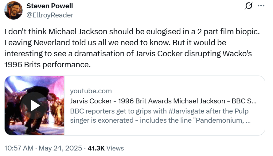 Within minutes I was bombarded by angry responses from an army of Jackson fans accusing me of every form of prejudice under the sun. It went on for days and got quite unpleasant. Although the conversations became more positive as they went on. Some people came to my support and colleagues approached me at work with warm words. Was my tweet justified? From a freedom of speech point of view, I had every right to say what I did. Regarding the other issues at stake, I’d love to hear your thoughts in the comment thread. Hopefully, we can keep it more civilised here than it was on X.