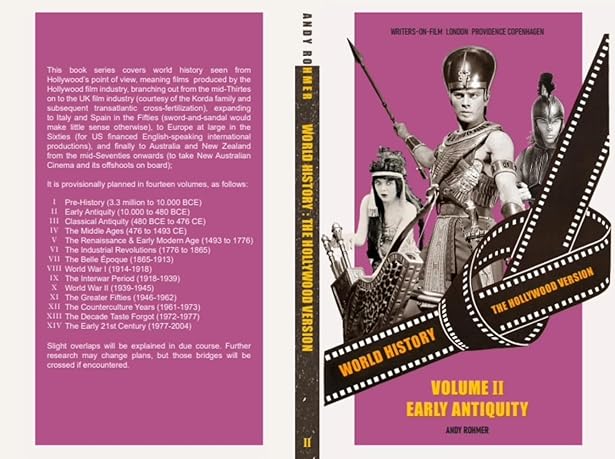 There are probably more films about World War Two than there were volunteers in the Home Guard, so readers may be relieved to hear that Rohmer is going through history chronologically and his latest volume focuses on Early Antiquity, which Rohmer defines as 10,000 to 480 BCE. Film buffs will delight in his choices. Do you want to read about how director Robert Aldrich put the lamentable fate of Sodom and Gomorrah onscreen? This is the book for you. Was Rossana Podesta alluring enough to play Helen of Troy and become the face that launched a thousand ships? Rohmer has the answer.